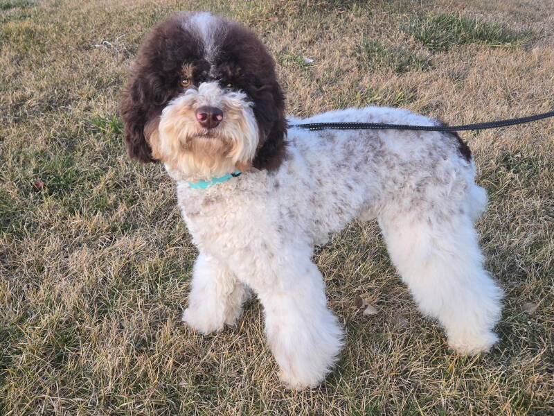 There will be an upcoming litter of multigenerational Bernedoodles due the end of May. Piper (on the left) is the mom, she is our Bernedoodle. Piper is very sweet, loves to snuggle, be with her people, and play outside. Piper weighs 22 lbs. The dad is Duke (on the right) he is a purebred poodle from Royal T Acres. Duke is very sweet, loves to play outside, and likes to snuggle. Duke weighs 18 lbs. These pups will be mid-size. Click "Contact" to message Amy and get on our waitlist!